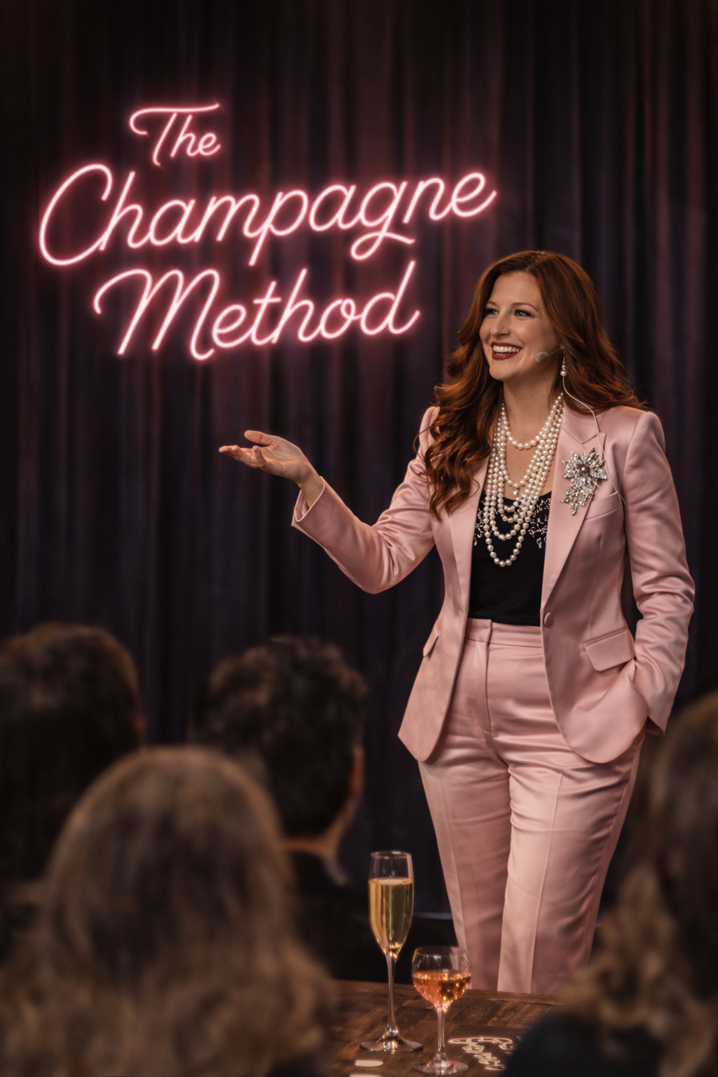 The Champagne Method™ is our signature approach to powering presence—poured into a book, brought to life through immersive workshops, and refined in private 1:1 intensives. However you take it, it’s designed to meet you where you are and elevate how you show up.