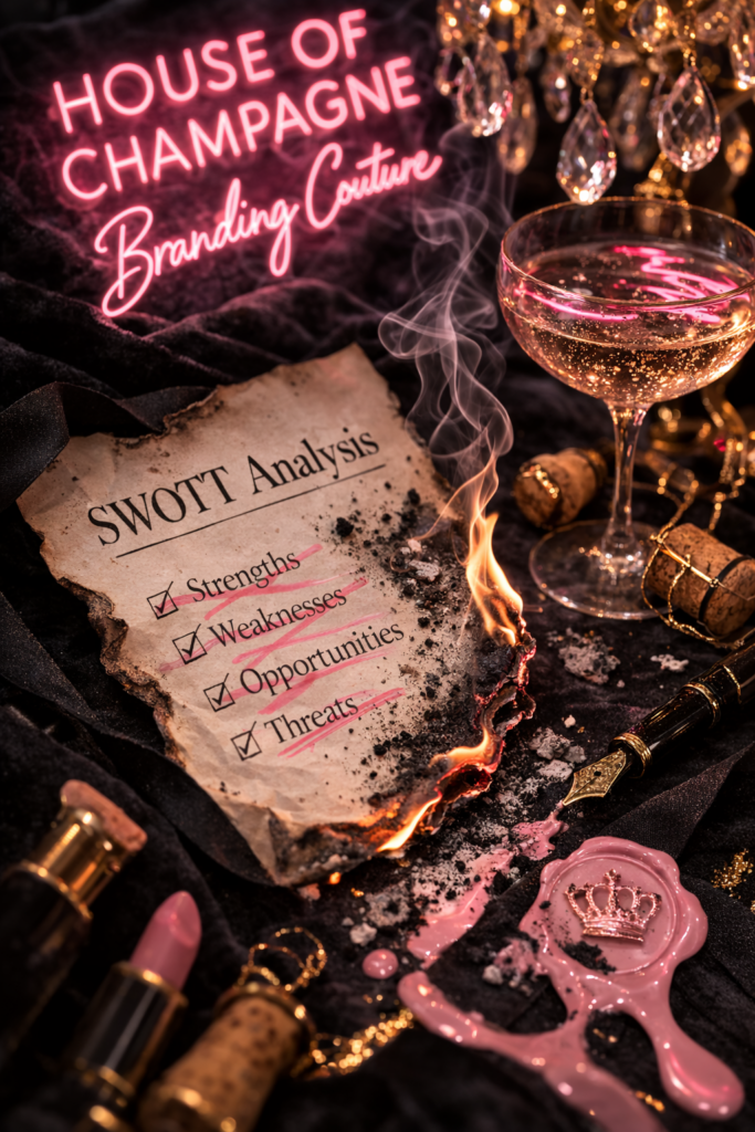 Around here, we take a slightly different approach. We burn the script—and then we use the ashes as eyeliner and keep going. Because Branding Couture was never meant to be tidy. It’s a little chaotic, a little theatrical, and sometimes it looks less like a checklist and more like a champagne tower in the middle of a ballroom—dramatic, slightly dangerous, and impossible to ignore. And sometimes, it looks like voice texts to yourself in the school drop off line.